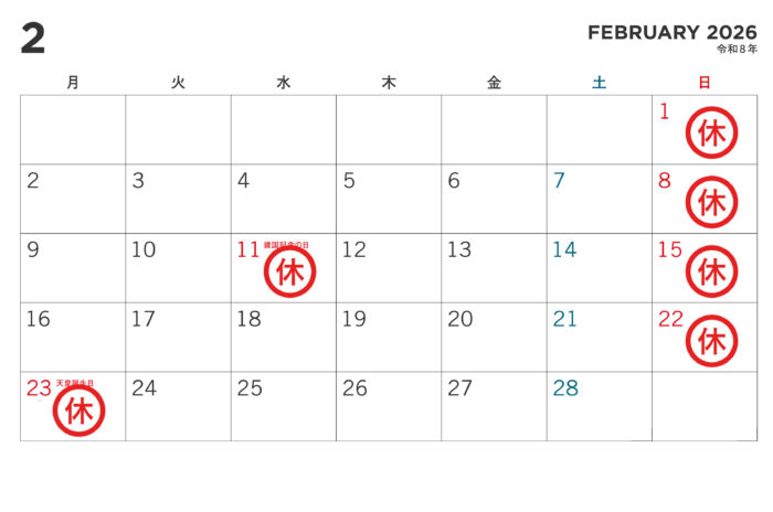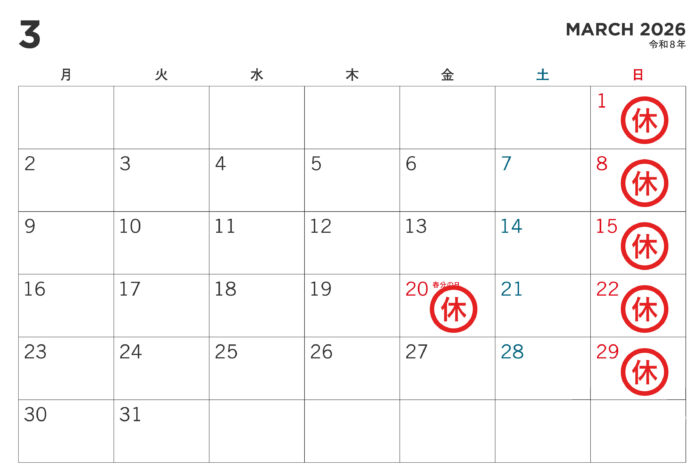 2026年01月25日 2月、3月の休診日のお知らせ 当院では下記日程を休診とさせていただきます。 あらかじめご了承頂きます様、お願いいたします。 ▲矯正日 2月:2(PM)、4(PM)、5(PM)、6、7 3月:2(PM)、4(PM)、5(PM)、6、7、14 ■外科日(PMのみ) 2月:21、28 3月:21、25、28